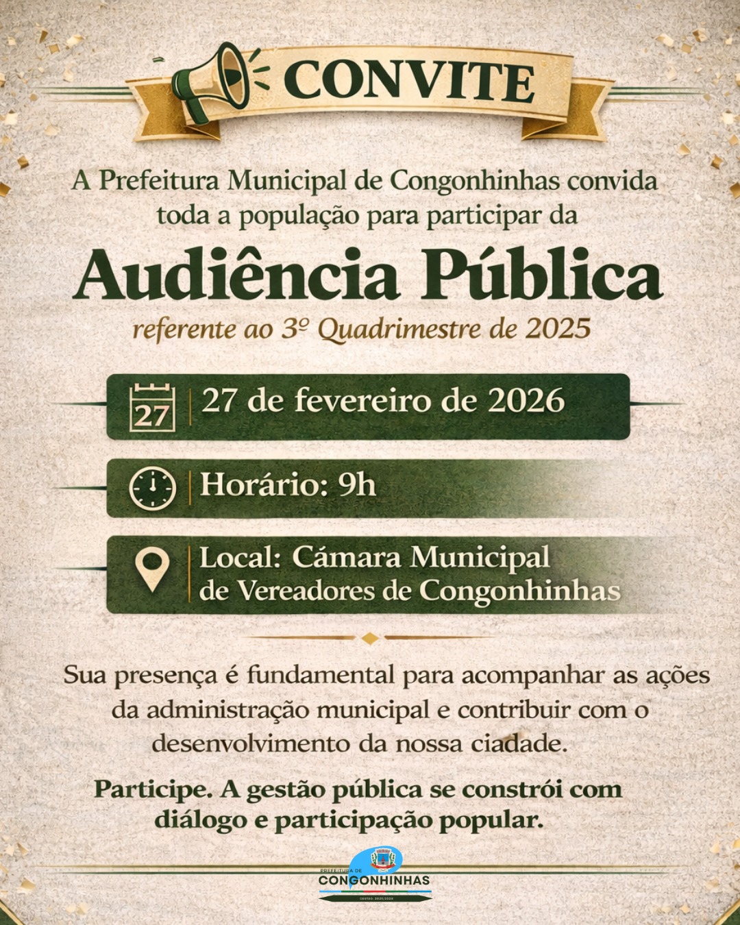 Convite Audiência Pública referente ao 3º Quadrimestre de 2025