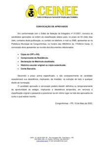 Convocação Estagiários Edital 01-2021 Congonhinhas