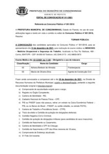 EDITAL DE CONVOCAÇÃO N° 011-2021 – CONCURSO PÚBLICO
